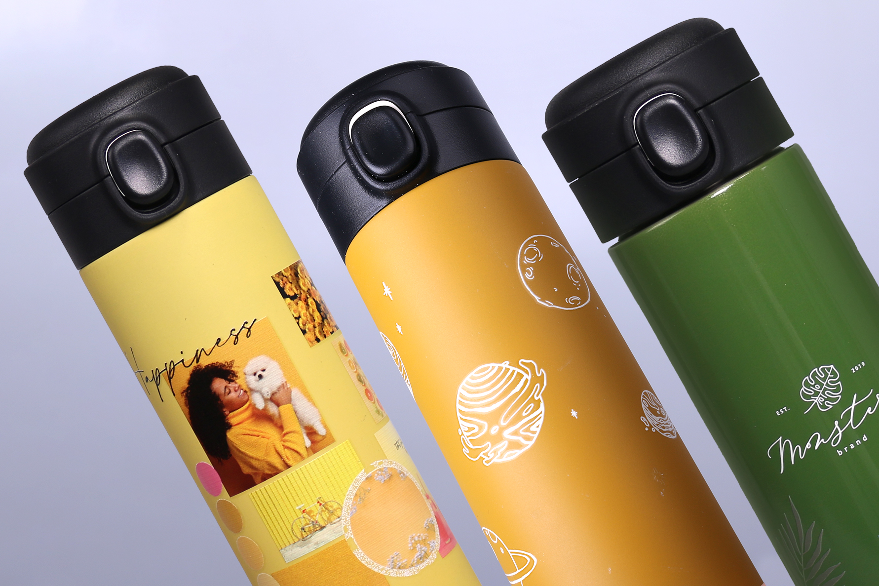 Get a photo-quality print and cover the entire surface of the thermal mug thanks to our 360° printing technology.
