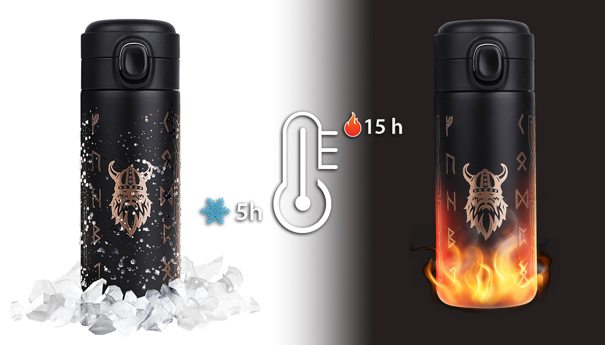 Galaxy thermal mugs keep warm for up to 15 hours and cool for up to 5 hours. Their double-walled stainless steel construction, Vacuum Insulation, maintains the temperature for longer and protects the user's hands from burns.
