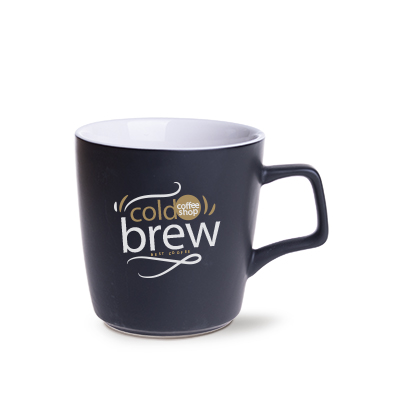 A mug from the BARREL family with a characteristic polygonal handle. Additionally, the Barrel Supreme mug is characterized by a colorful interior and a matte black surface on the outside.