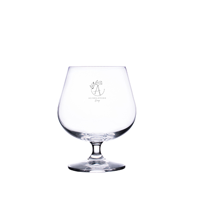 Distincted cognac glass. Its noble shape brings to mind positive associations of good taste and elegance for the company whose branding it presents.
