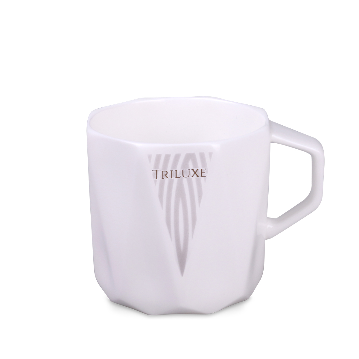 A prestigious mug made from top-quality Fine Bone China porcelain. It stands out with its unique geometric shape, resembling a diamond in its structure. A representative of the Prestige Line.