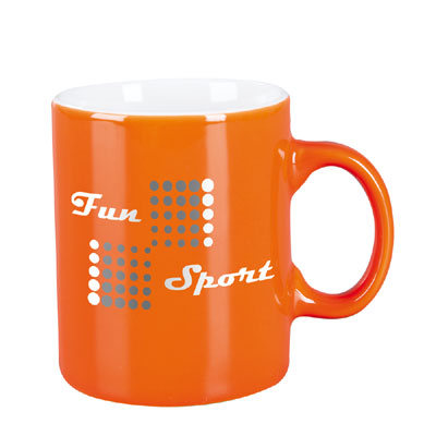 A small, simple, cylindrical mug which, despite low capacity, allows for the application of a relatively large advertising print. This product is from the end of a series and may have pinholes, dots, and variations in glaze shade.