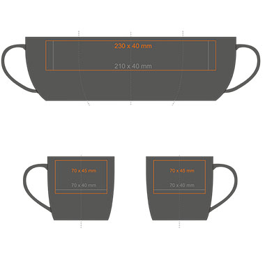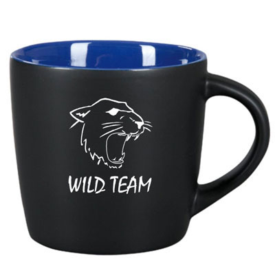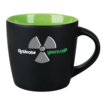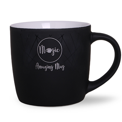 A very popular advertising oval mug with modern, matt glaze. The glossy, colorful inside makes an excellent contrast with the black satin exterior. The mug is available in many color versions.