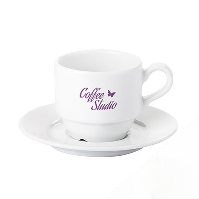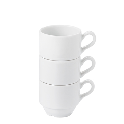 Thick-walled porcelain Espresso cup. This product is from the end of a series and may have pinholes, dots, and variations in glaze shade.