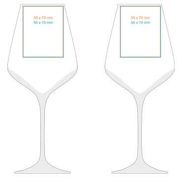 Refined glass for brand communication. An elegant wine glass whose decoration will be a perfect complement to the unique message of the brand.