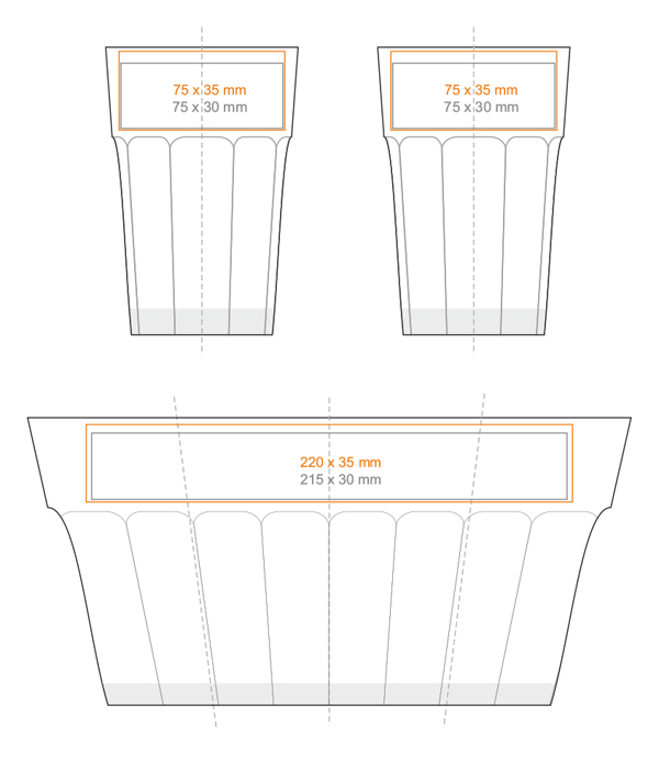 Popular thick glass. The lower part has characteristic grooves for a secure grip. The upper part allows for the application of a presentable print.