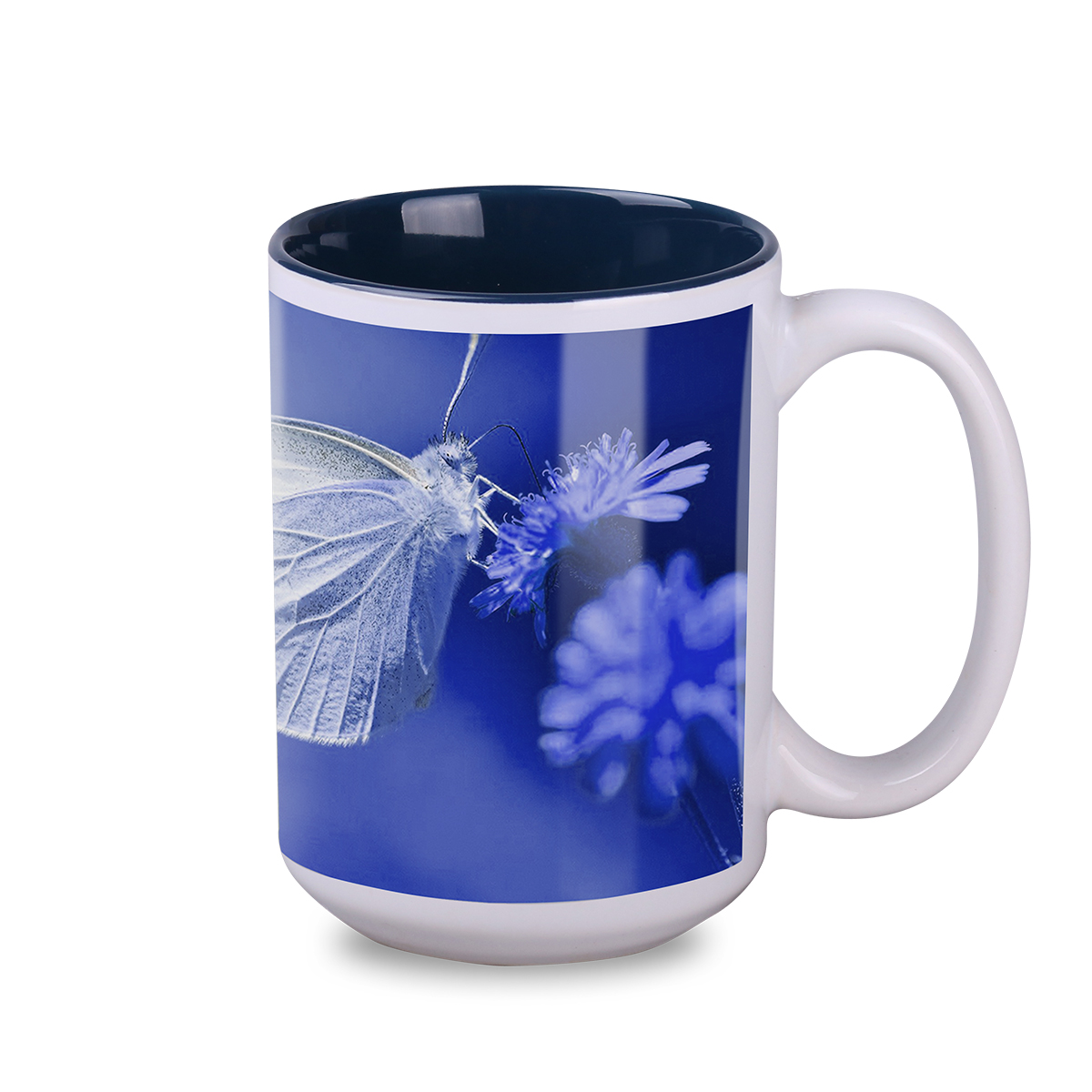 A sublimation mug with a classic shape and large capacity. Available in several variants with a colorful interior. It features an ergonomic handle and offers extensive branding opportunities.