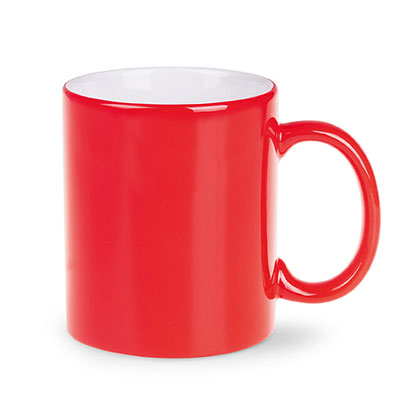 A large, simple, cylindrical mug. Its main advantage is the large print area and the good price. The mug is available in many color versions.